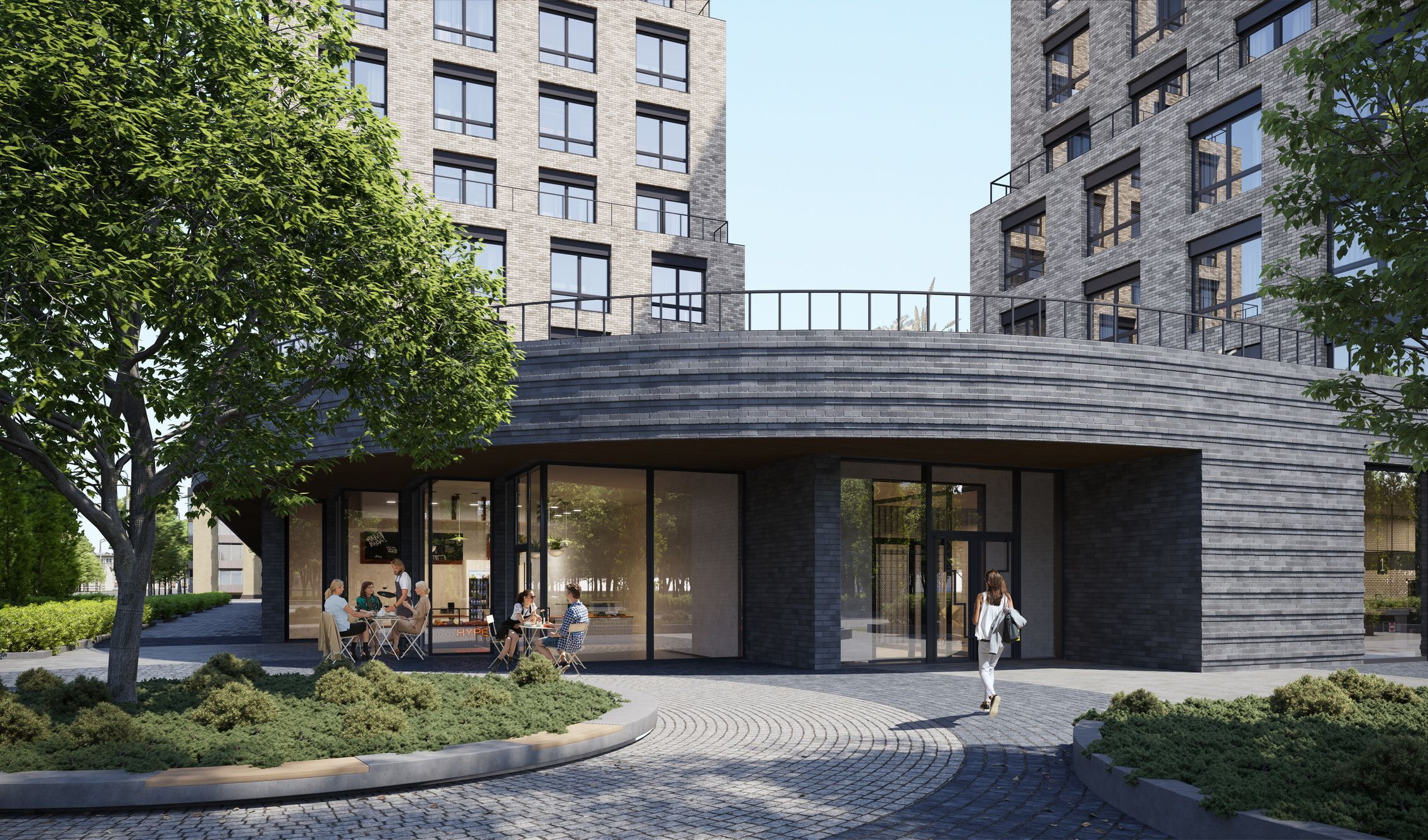 «Существующие деревья вдоль улицы сохраняются, а на перекрестке высаживаются новые, вокруг которых образуется небольшая городская площадь. Здесь разворачиваются разнообразные события: фланирующие пешеходы, завсегдатаи кафе, посетители магазинов, расположенных на первых этажах. А для жильцов дома предусмотрен полузакрытый зеленый двор», - это видение архитекторов ЖК Пушкина 77 на благоустройство в рамках проекта. Добавим также, что со стороны улицы Масленникова запроектирована велодорожка, которая будет интегрирована в городскую велоинфраструктуру.