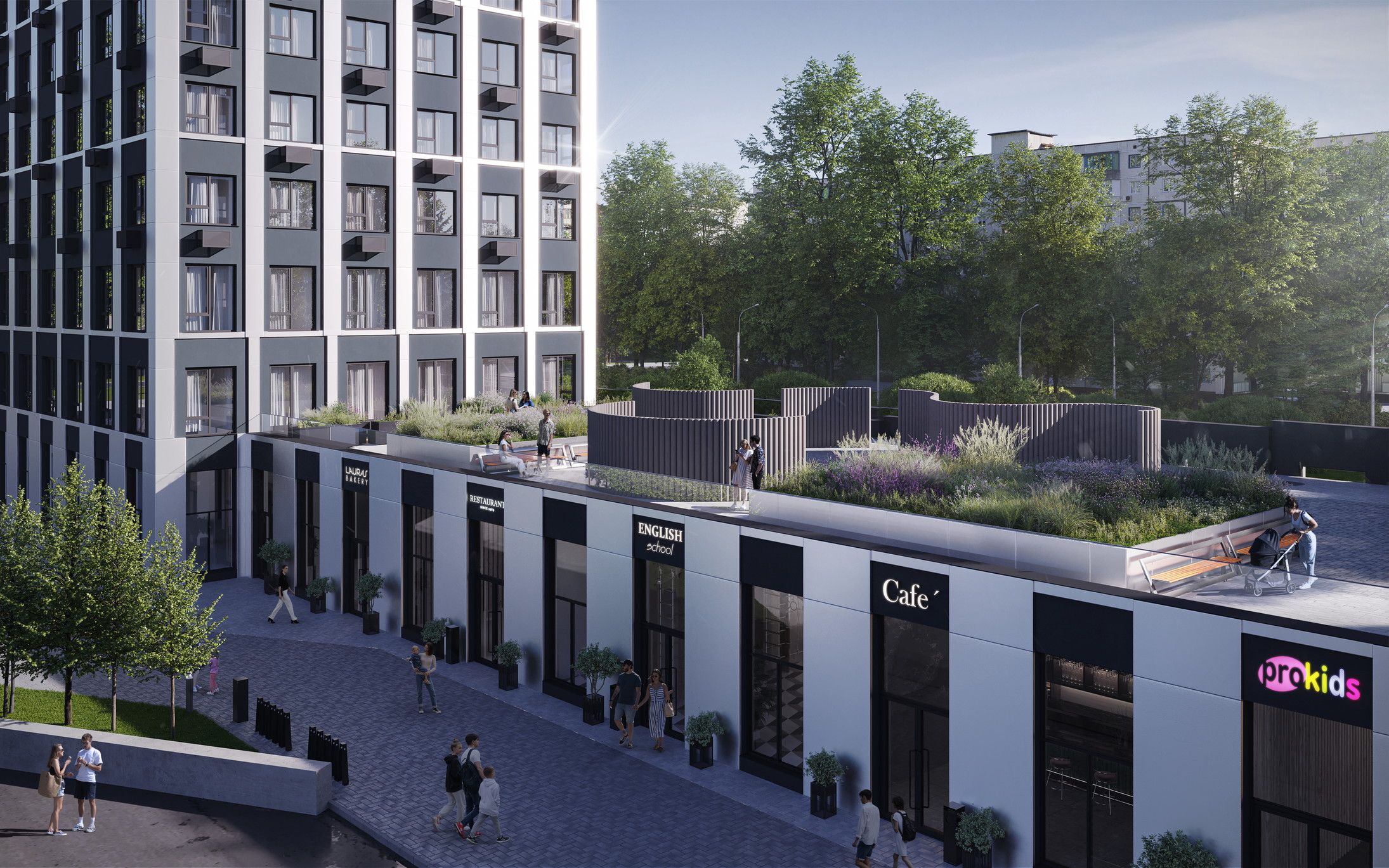 Еще яркие детали комплекса — эксплуатируемая крыша торговой галереи на первом этаже, стильный приватный двор и welcome-зона. Классно, когда все любимые места для покупок и отдыха находятся в доме: стрит-фуд, маркеты, лаунж-зоны и кафе.