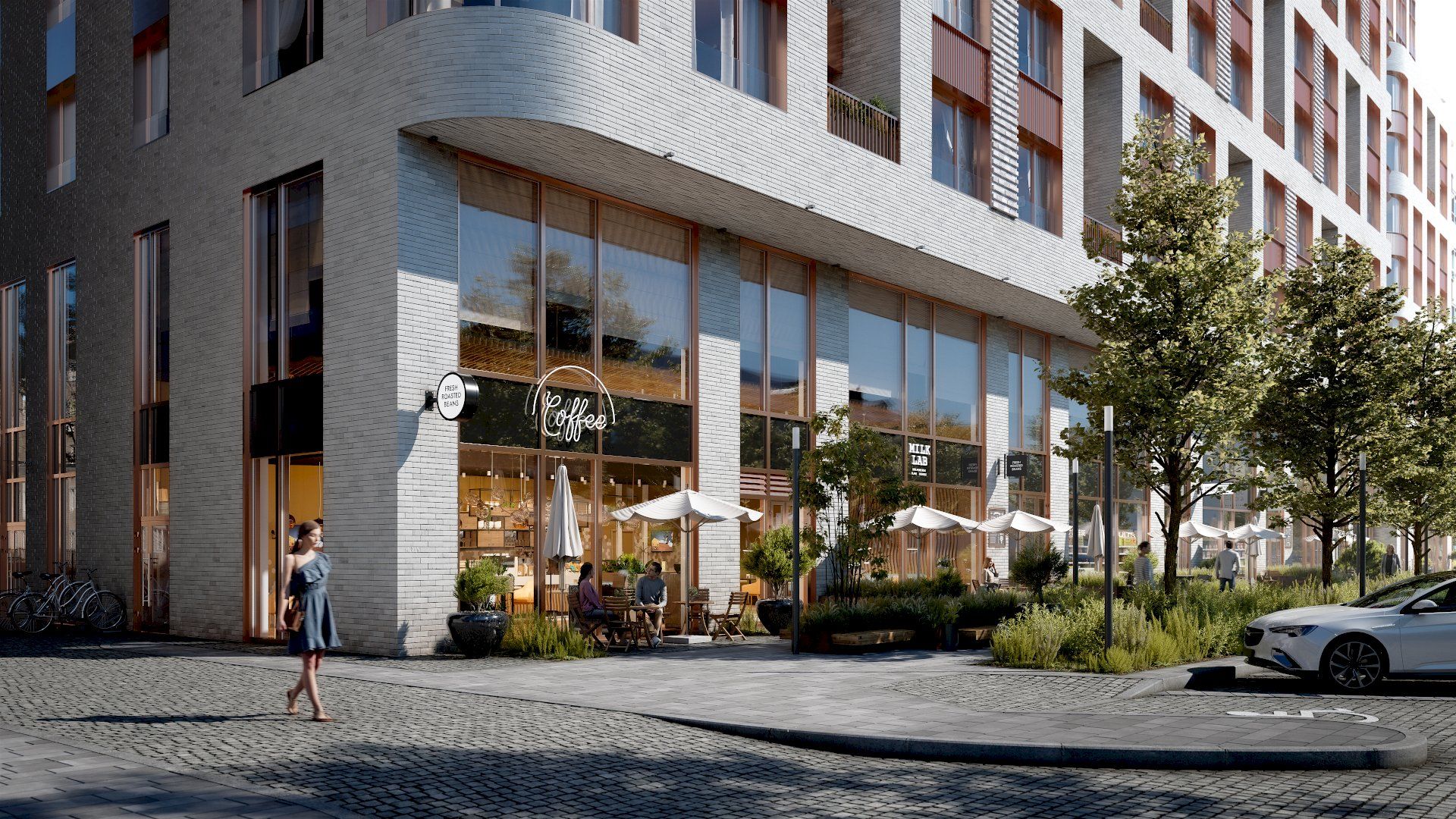 Мы впервые объединяем жилую, приватную часть дома и городское пространство с помощью своеобразного архитектурного «градиента», а не двери подъезда или забора. Это просторный гранд-холл, по сути, гостиная White House, которая будет доступна всем. Резиденты могут попасть в свою квартиру через гранд-холл или же более приватно – через закрытый двор. Логичным продолжением этого пространства станет коворкинг на втором этаже коммерческой линии дома.