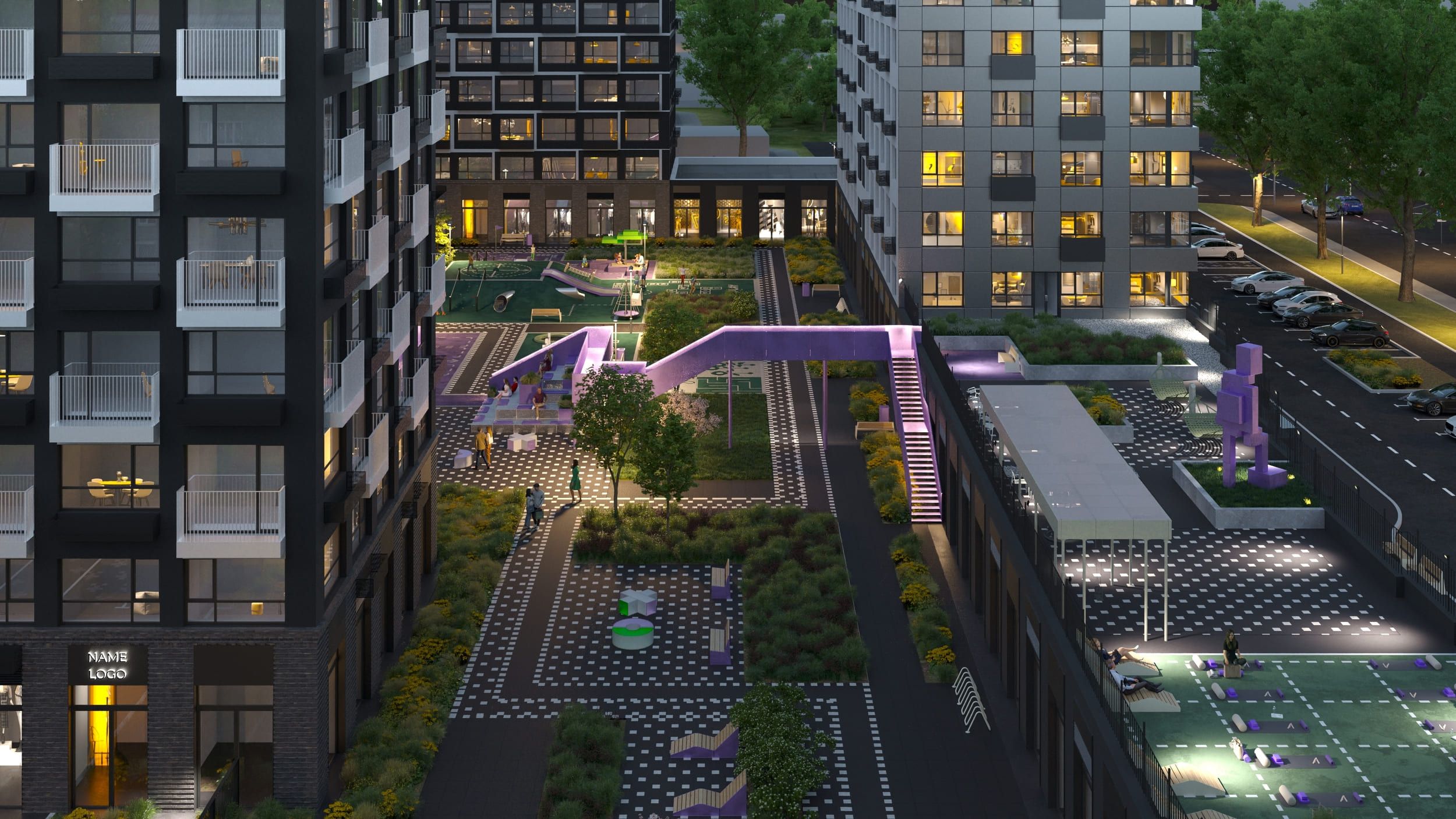 Разноэтажные корпуса, поддерживающие фронты улиц, просторный закрытый двор, динамические фасады с активной пластикой и сервисами для жителей на 1ом этаже — новое качество жизни для горожан в сложившемся районе, созданные с вниманием к деталям девелопером и архитектором.